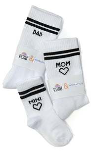Das Socken-Set für die ganze Familie. Das Set umfasst je ein Paar Socken für MOM, DAD und MINI, für einen stylischen Familienlook. Hergestellt aus weicher Baumwolle, bieten die Socken eine perfekte Passform und einen hohen Tragekomfort. Auch als Geschenk für werdende Eltern ideal!
