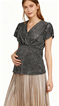 Ein Shirt für festliche Anlässe: Mit dem Mamalicious Glitzershirt bist du der Hingucker! Mach deinen Babybauch zur Glitzerkugel und strahle mit deinem Glow um die Wette. Das 2-in-1-Shirt kannst du auch in der Stillzeit tragen, der Ausschnitt hat einen praktischen Wickellook.