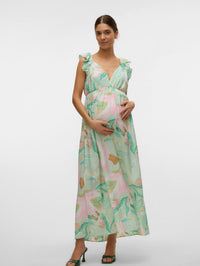 Fabelhaftes, leichtes Kleid von Vero Moda Maternity für deinen Frühling und den wachsenden Bauch. Der blumige Print ist in einem zarten Pastell, das Kleid ist gemacht für Parties, Hochzeiten und Events. Es fällt weich und locker, der Viskose-Mix macht das Tragen sehr angenehme. An den Schultern sorgen Volants für einen verspielten Touch. Am Rücken kannst du für noch mehr Halt durch eine Schleife sorgen.