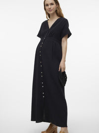 Lässig und leicht in Maxilänge: das Vero Moda Maternity Umstandskleid aus weichem Musselin. Mit kurzem Arm, V-Ausschnitt und Abnäher unter der Brust für den fließenden Fall über den wachsenden Bauch. Die durchgängige Knopfleiste erlaubt einfaches Stillen und das Tragen über die Schwangerschaft hinaus. Style dazu etwa alltagstauglich Boots oder festlicher Stiefeletten.