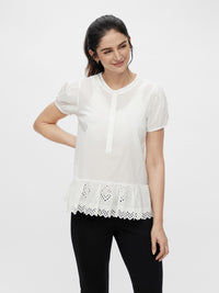 Klassisch weiß ist die Mamalicious Umstands-Shirtbluse mit verspieltem Rüschendetail zum Aufknöpfen ein vielseitiger Begleiter in Schwangerschaft und Stillzeit. Easy kombinierbar eine harmonische Ergänzung für jedes Outfit. Trage etwa einen Umstandspullover drüber und lasse die Rüsche unten rausgucken.