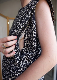 Das ärmelloses Still-Tanktop vereint Funktionalität und Stil. Der weiche, dehnbare Jersey sorgt für optimalen Tragekomfort, während seitliche Öffnungen mit Reißverschlüssen diskretes Stillen ermöglichen. Der gerade Schnitt, Rundhalsausschnitt und das Allover-Leopardenmuster machen das Top zu einem echten Hingucker. Die leicht überschrittenen Schultern verdecken die Öffnungen komplett – für ein sicheres Gefühl im Alltag. Mit dezentem Tajinebanane-Label im Nacken.