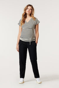 Die Umstandshose von Noppies ist besonders weich, elegant und hat einen hohen Tragekomfort. Dank des hohen Bauchbands sitzt sie in jeder Phase der Schwangerschaft bequem und gibt dir ein sicheres Gefühl mit deinem wachsenden Babybauch. Mit Gürtelschlaufen und abnehmbarem Stoffgürtel und Eingriffstaschen vorn. Deine Umstandshose für Business und Freizeit.