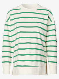 Der Pepe Pullover von Noppies besteht aus weichem, dünnem Baumwoll-Stoff mit Streifenmuster. Das Material macht ihn perfekt für den Übergang wenn es kühler wird. Er hat einen Rundhalsausschnitt, lange Ärmel mit elastischen Bündchen und fällt weit über die Hüfte. Dank der Schlitze am Saum lässt er sich auch nach der Schwangerschaft und beim Stillen bequem tragen.