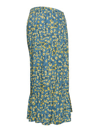 Dieser Mamalicious Midi Umstandsrock aus nachhaltiger Viskose mit verspieltem Floraldruck in gelb auf hellblauem Fonds sorgt mit seinem elastischen Bund und leicht fallenden Volantsaum für Bequemlichkeit und Tragekomfort während der gesamten Schwangerschaft. Du kannst das Bündchen angenehm über dem wachsenden Babybauch tragen. Kombiniere im Alltag etwa flache Ballerinas oder Sneaker dazu.