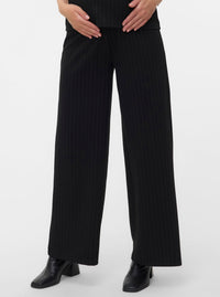 Super coole Stoffhose mit weitem Bein und mit feinen Nadelstreifen. Die Hose ist aus weichem Viskosemix und sitzt sehr bequem über dem Babybauch. Die feinen Nadelstreifen sorgen für einen eleganten Look. Perfekt für den Office-Look oder einen eleganten Auftritt. Kombiniere die Hose mit einem Shirt oder einer weißen Bluse. Trage dazu Sneaker, Loafer oder Stiefeletten.